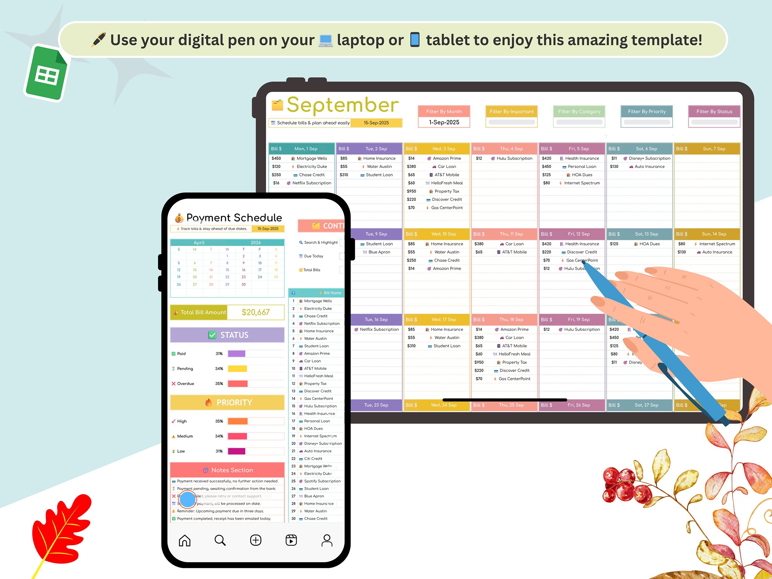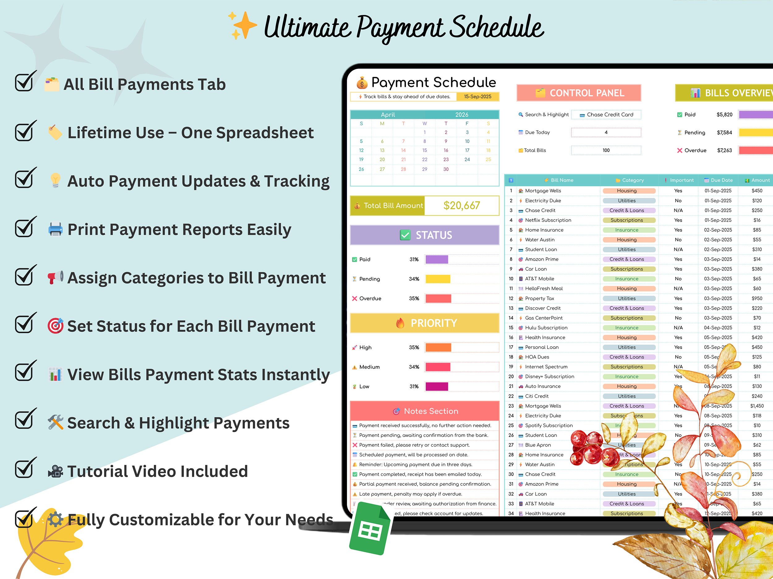 Stay organized and never miss a payment with this Bill Calendar Google Sheets Template — designed for individuals, families, and small businesses who want to track bills, plan payments, and stay in control of their finances. 💰