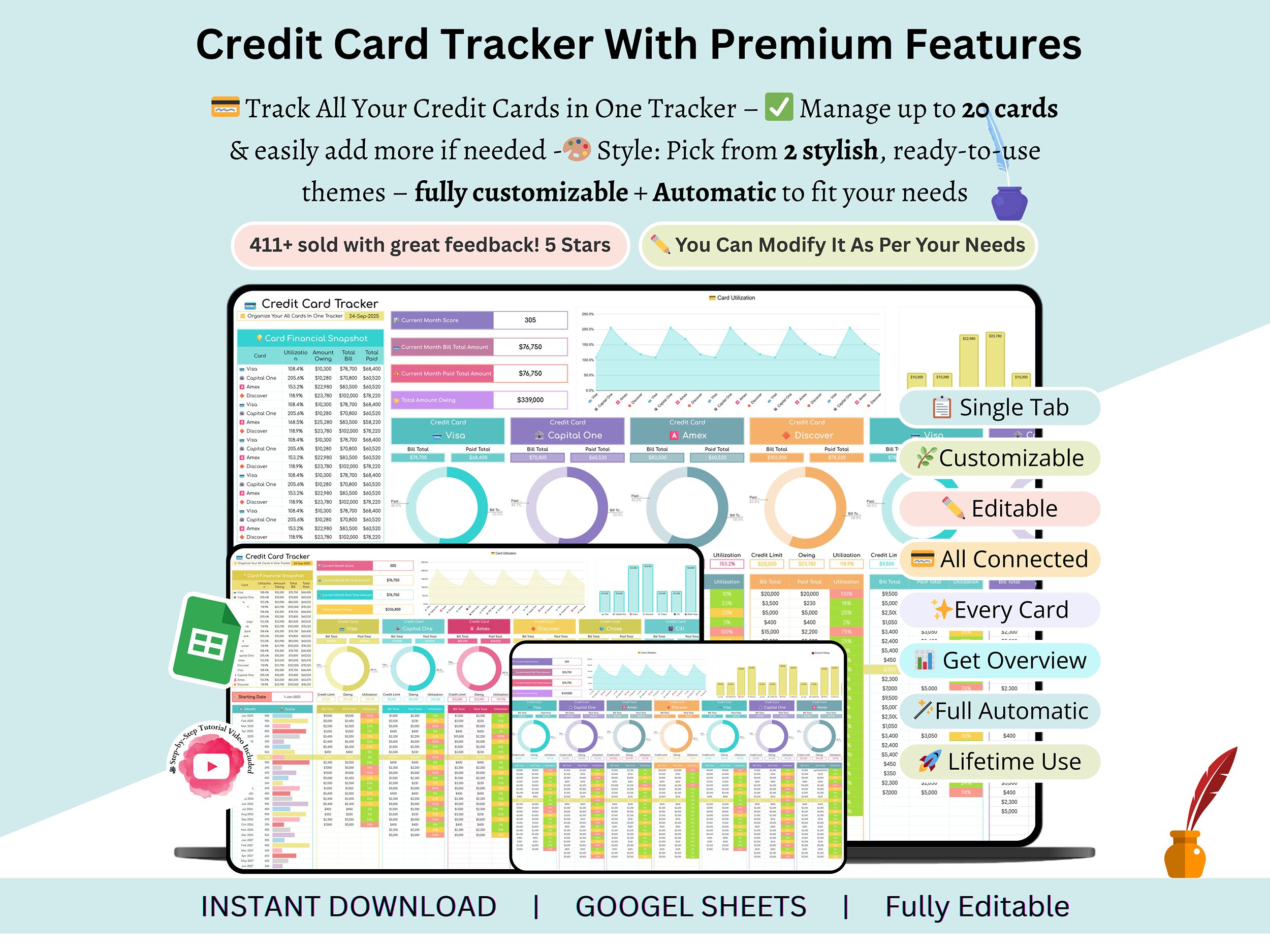 Designed to help you manage multiple cards with ease, this smart and stylish tracker keeps your spending, balances, and utilization perfectly organized β all in one clean, easy-to-use Google Sheet.