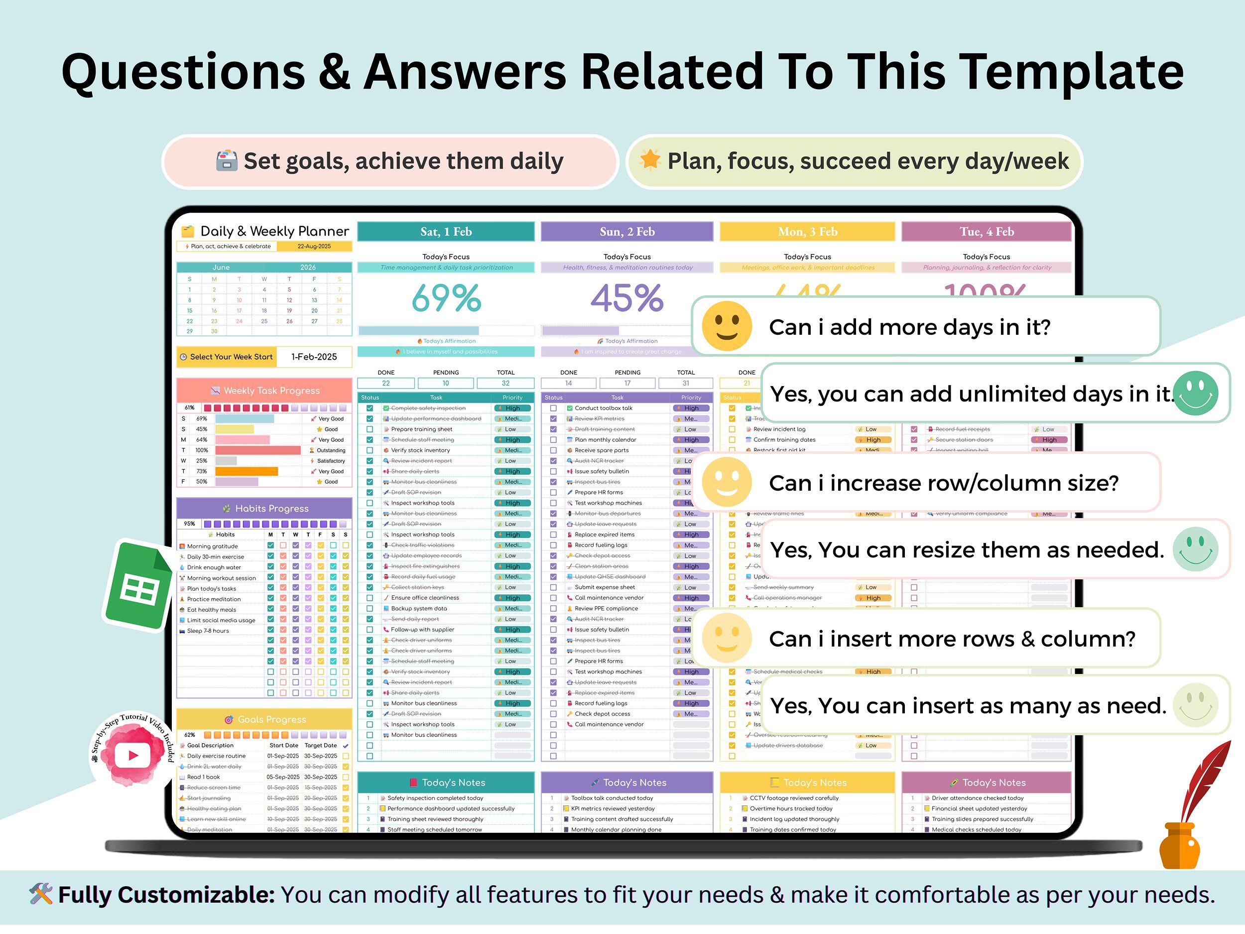 π₯ Step-by-Step Tutorial Video: Learn how to use and customize your planner easily.