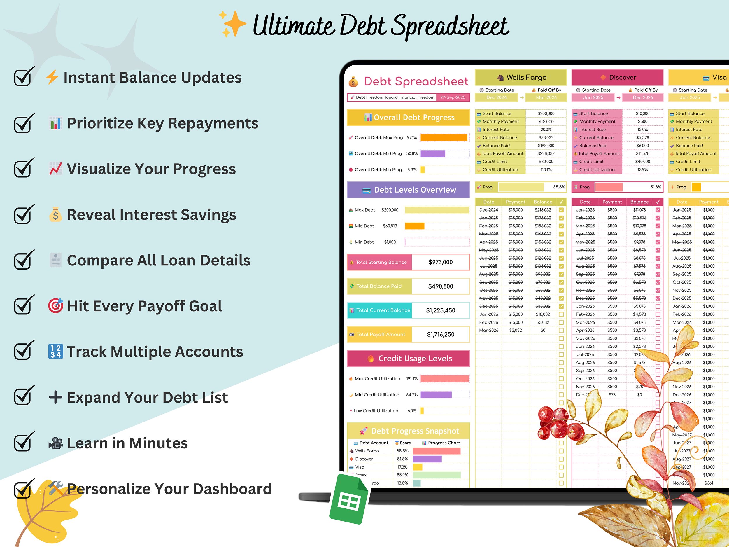 Looking for a powerful Debt Spreadsheet that includes Snowball and Avalanche payoff options? Youβre in the right place! This fully automated spreadsheet makes it simple to plan, track, and eliminate debt while staying organized and motivated.