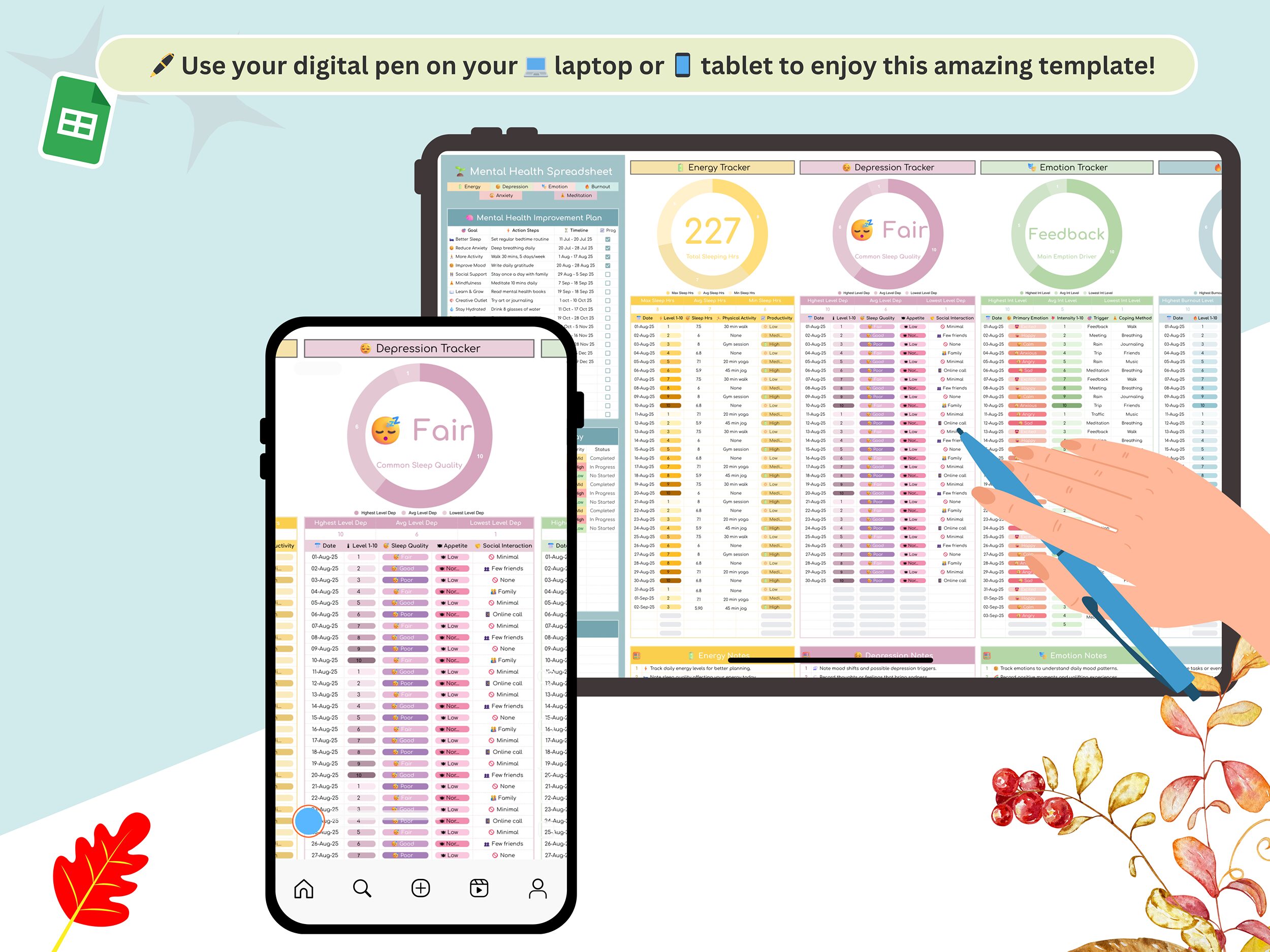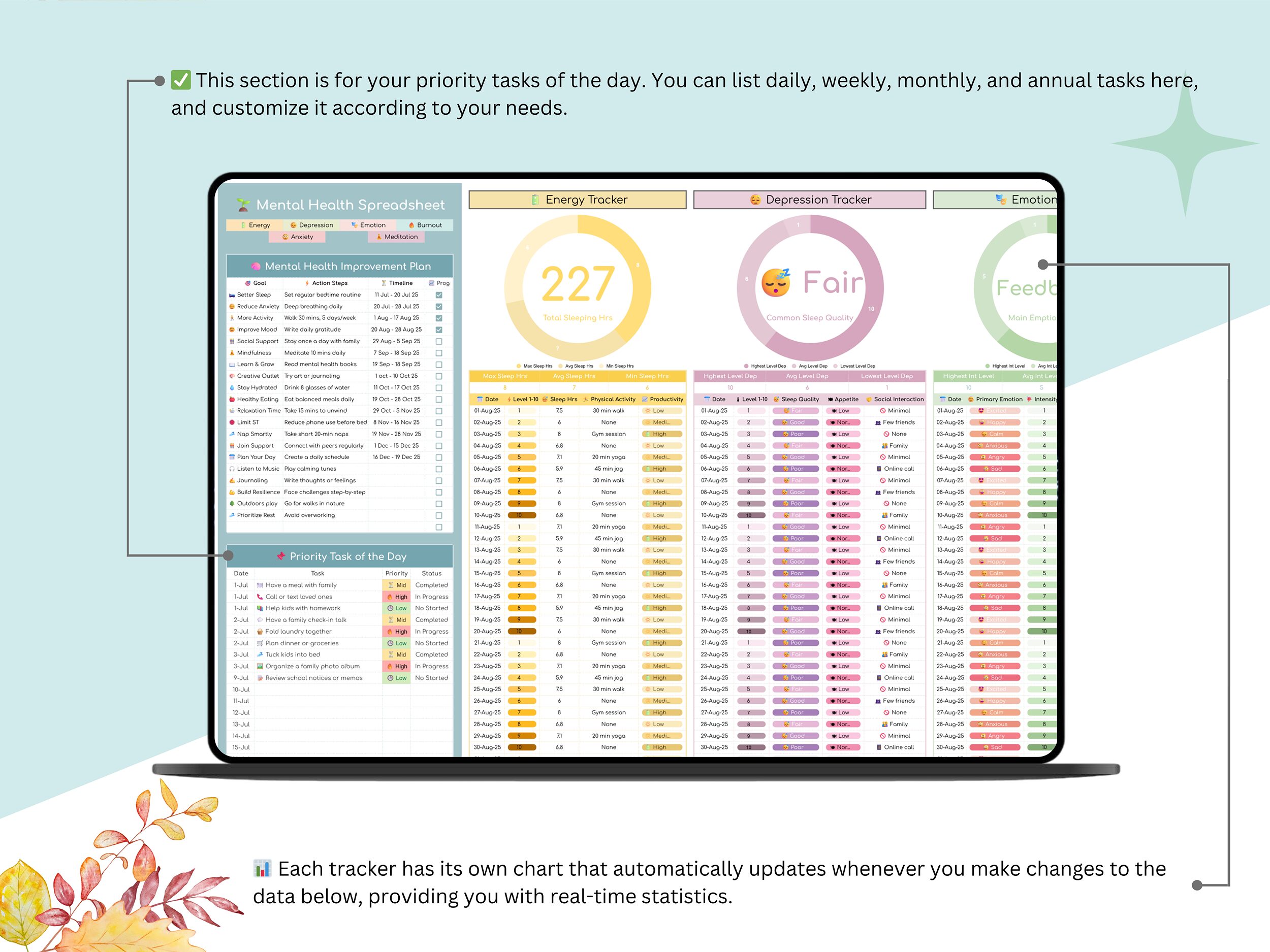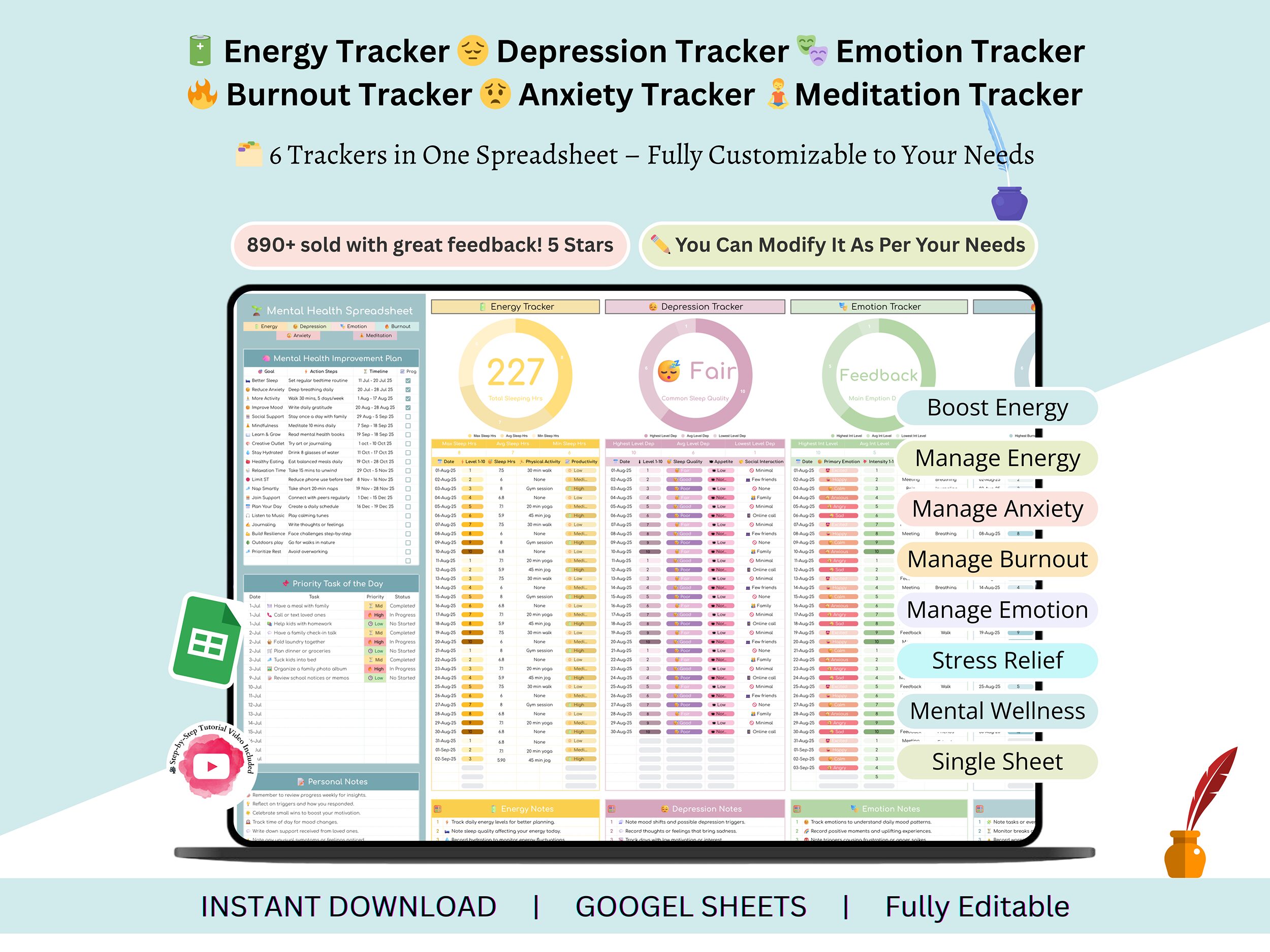 A comprehensive Mental Health Spreadsheet (Google Sheets) designed to be simple, intuitive, and fully customizable.