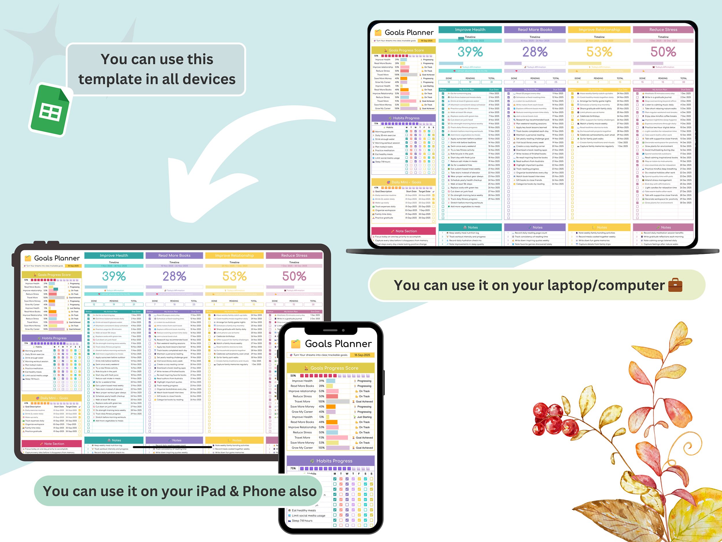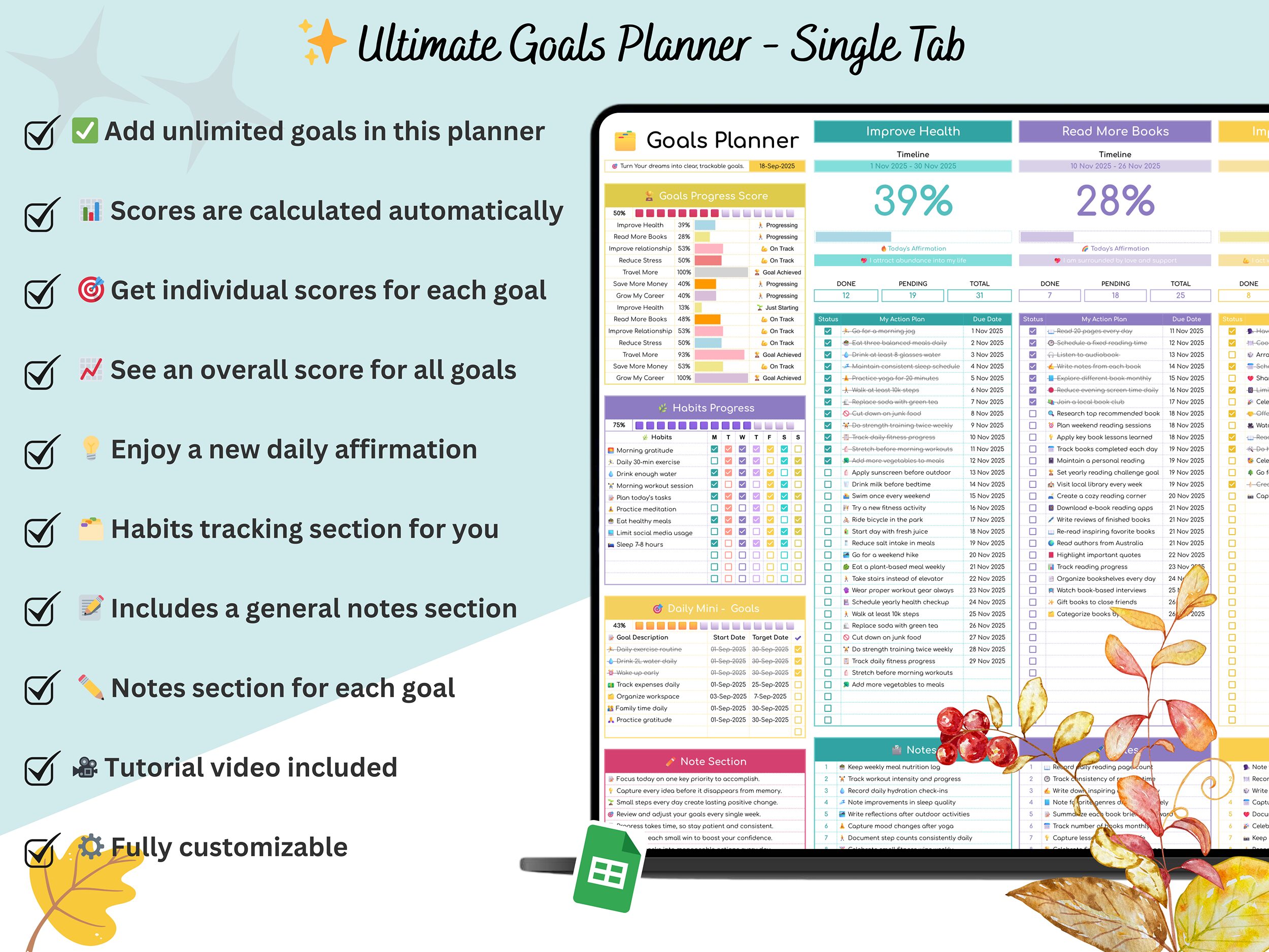 ✅ Automatic Goals Planner Spreadsheet (Google Sheets format)