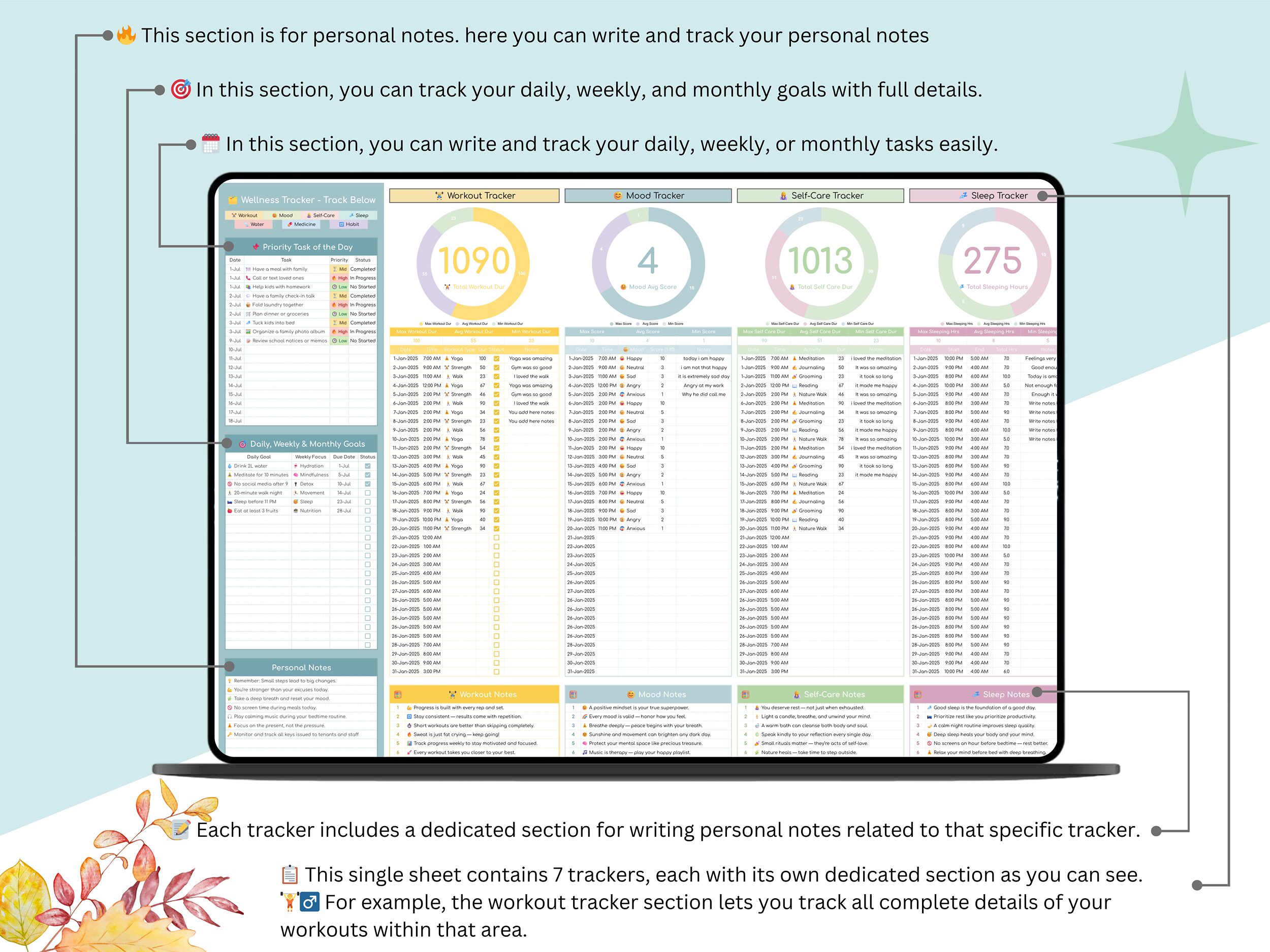 π 7 Essential Wellness Trackers in One Single Sheet
