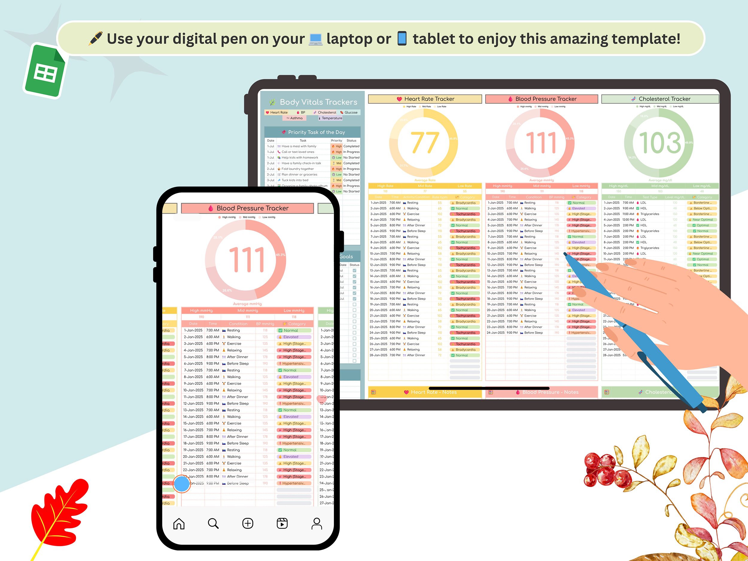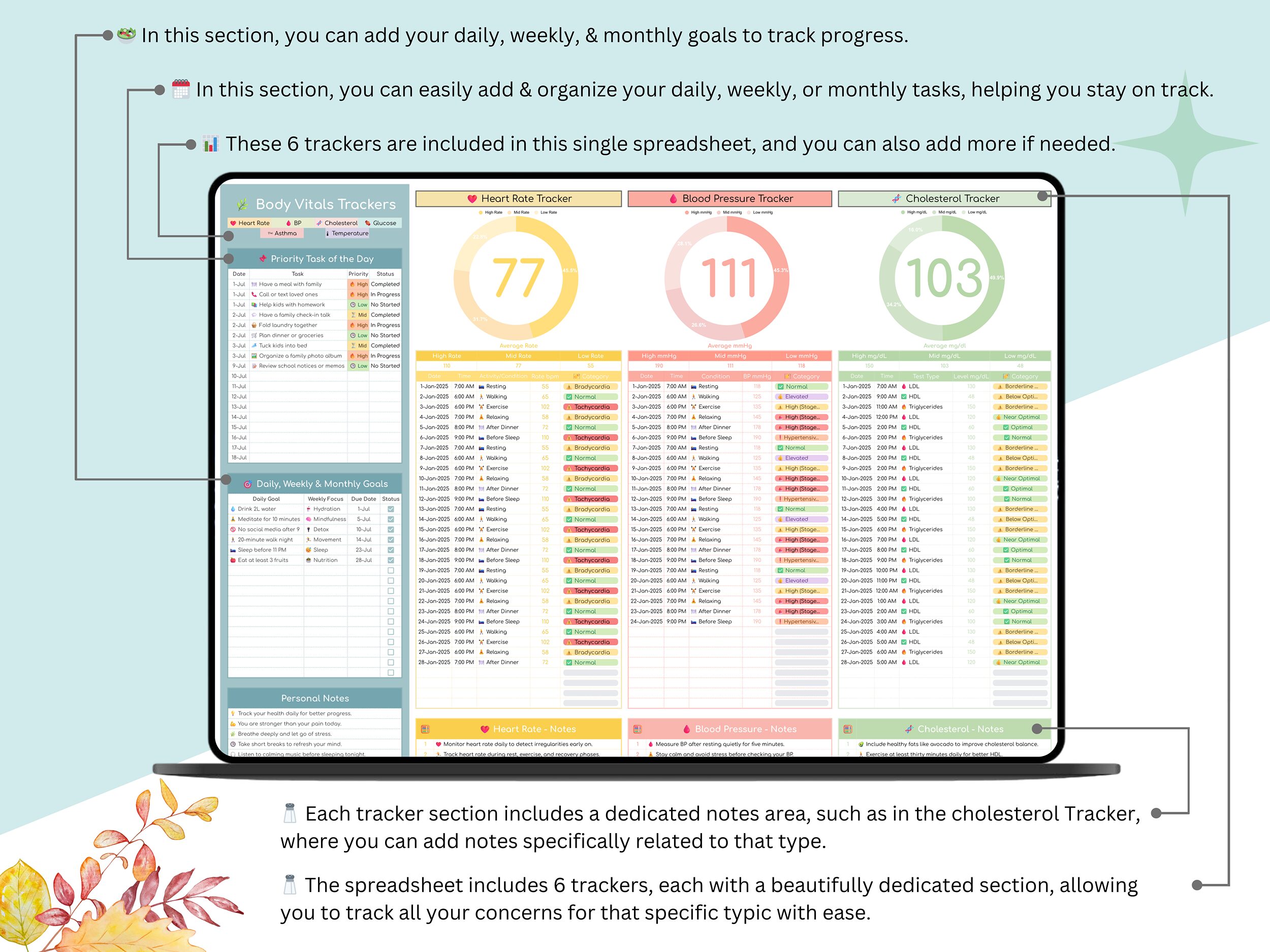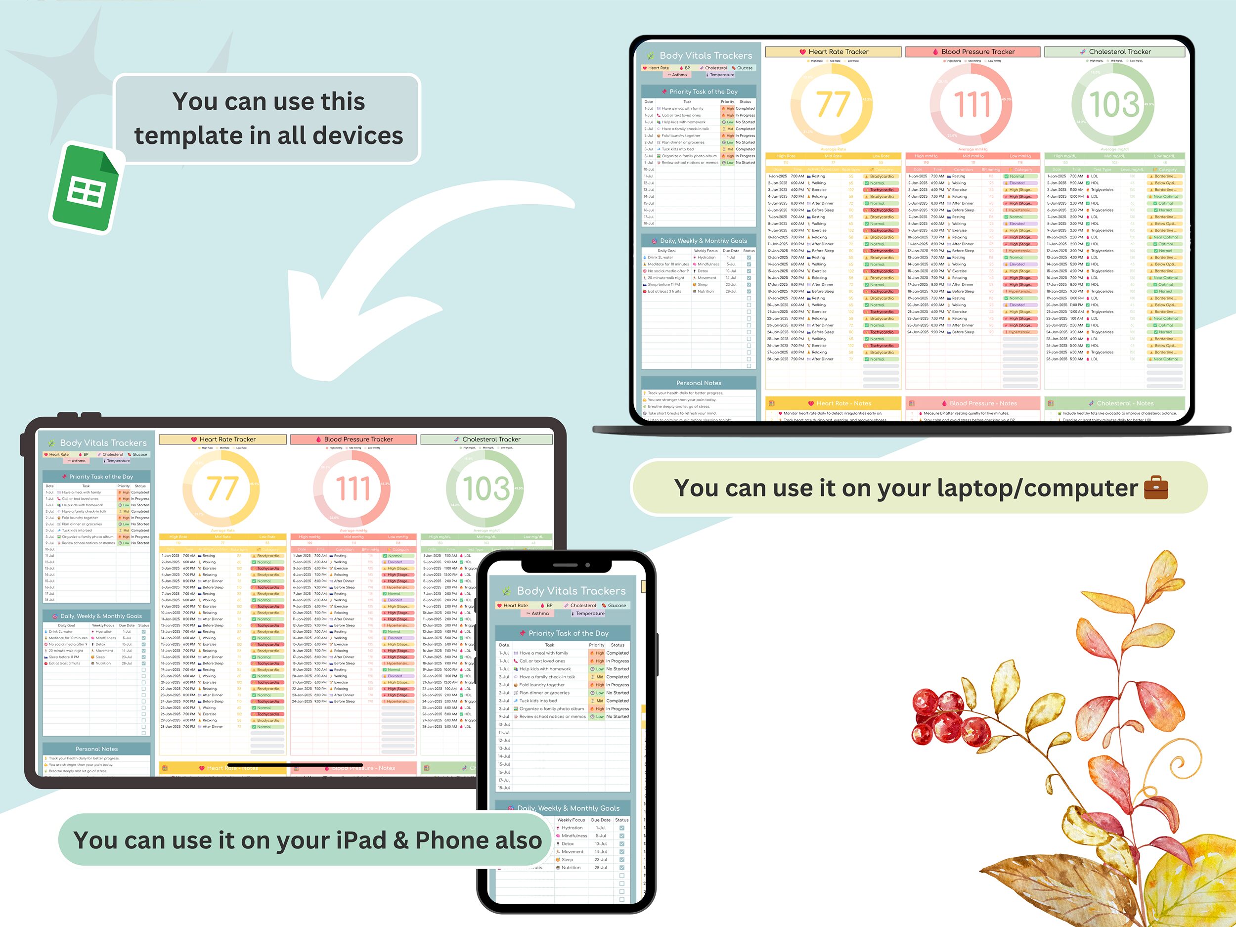 Take control of your health with this all-in-one Body Vitals Tracker! Designed in Google Sheets, this professional, easy-to-use template allows you to track and analyze your key health metrics in one place.