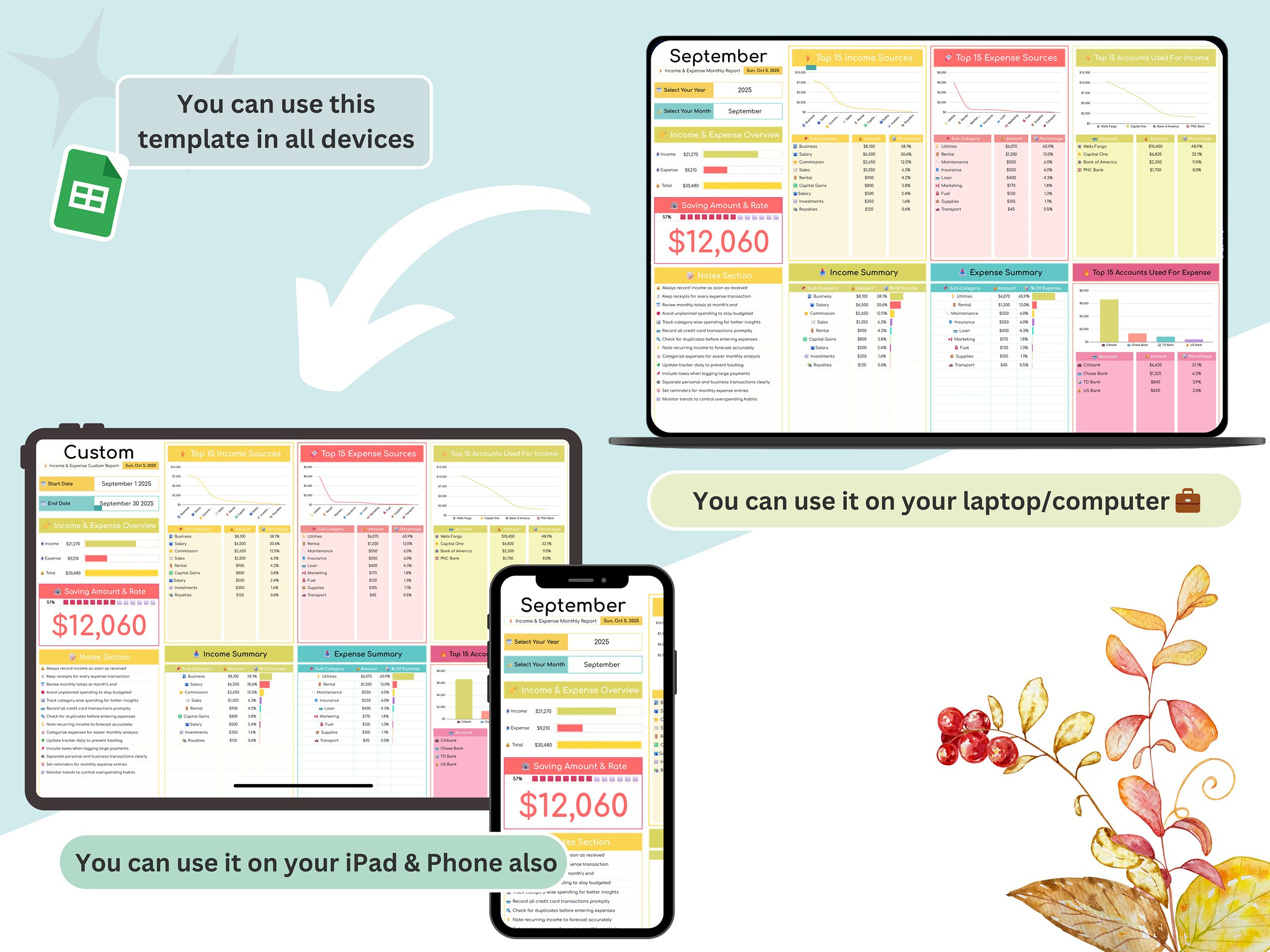 Google Sheets Compatible β No software required β use it anywhere, on any device.
