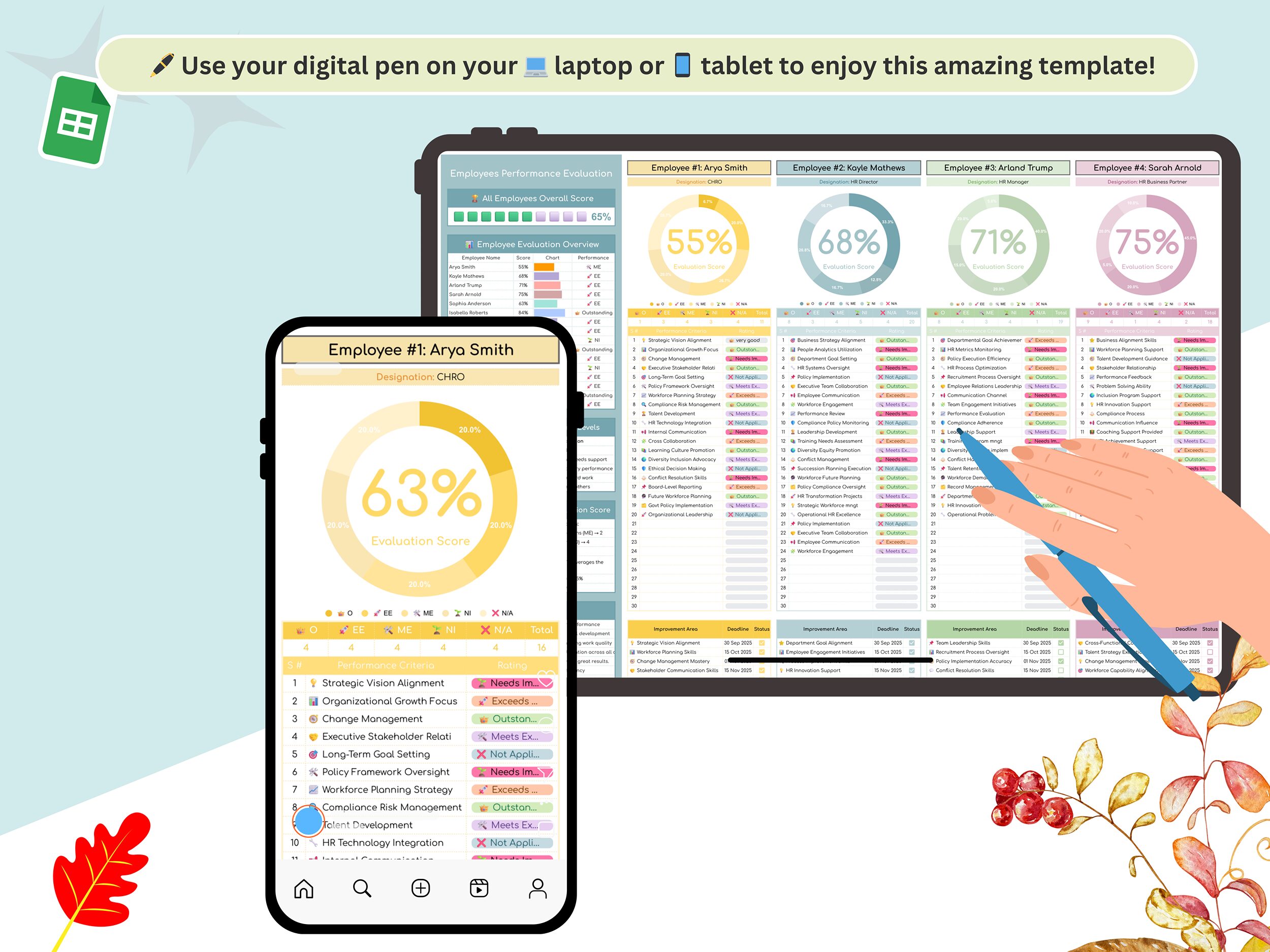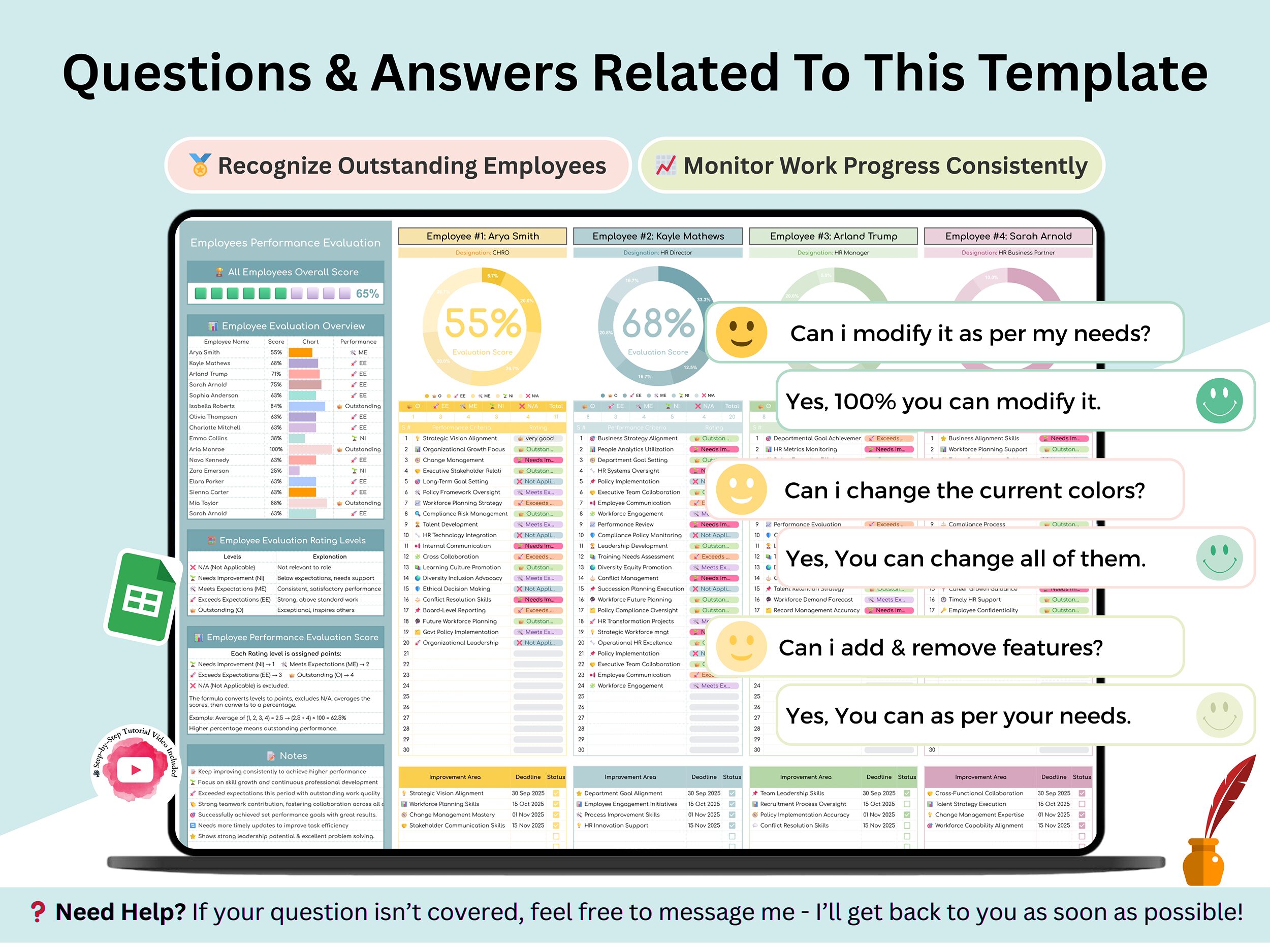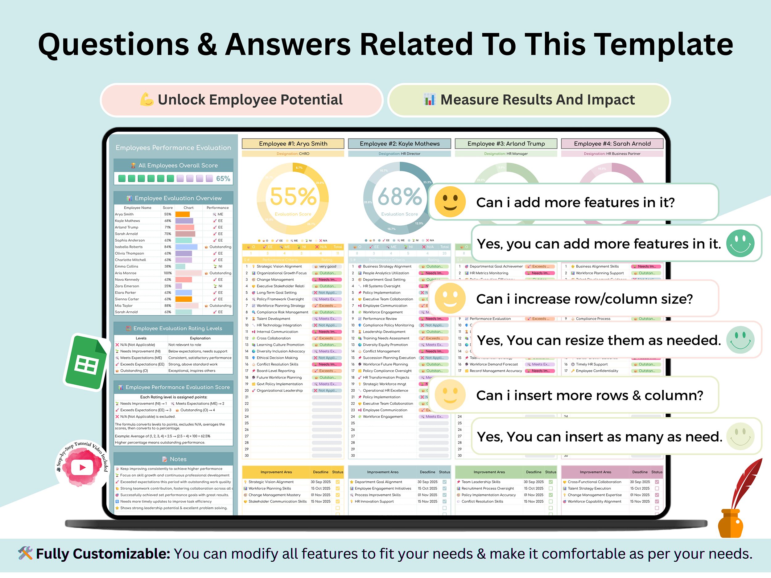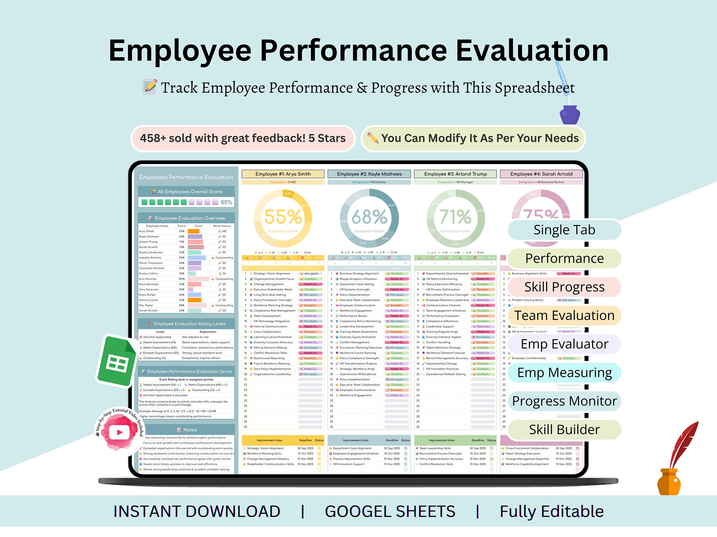 Are you looking for employee performance evaluation template? So, you are at the right place. Elevate your team management and gain a professional edge with our Employee Performance Evaluation Template for Google Sheets. This beautifully designed and highly effective tool is perfect for managers, HR professionals, or any business owner looking to simplify the review process and foster a high-performing team. π