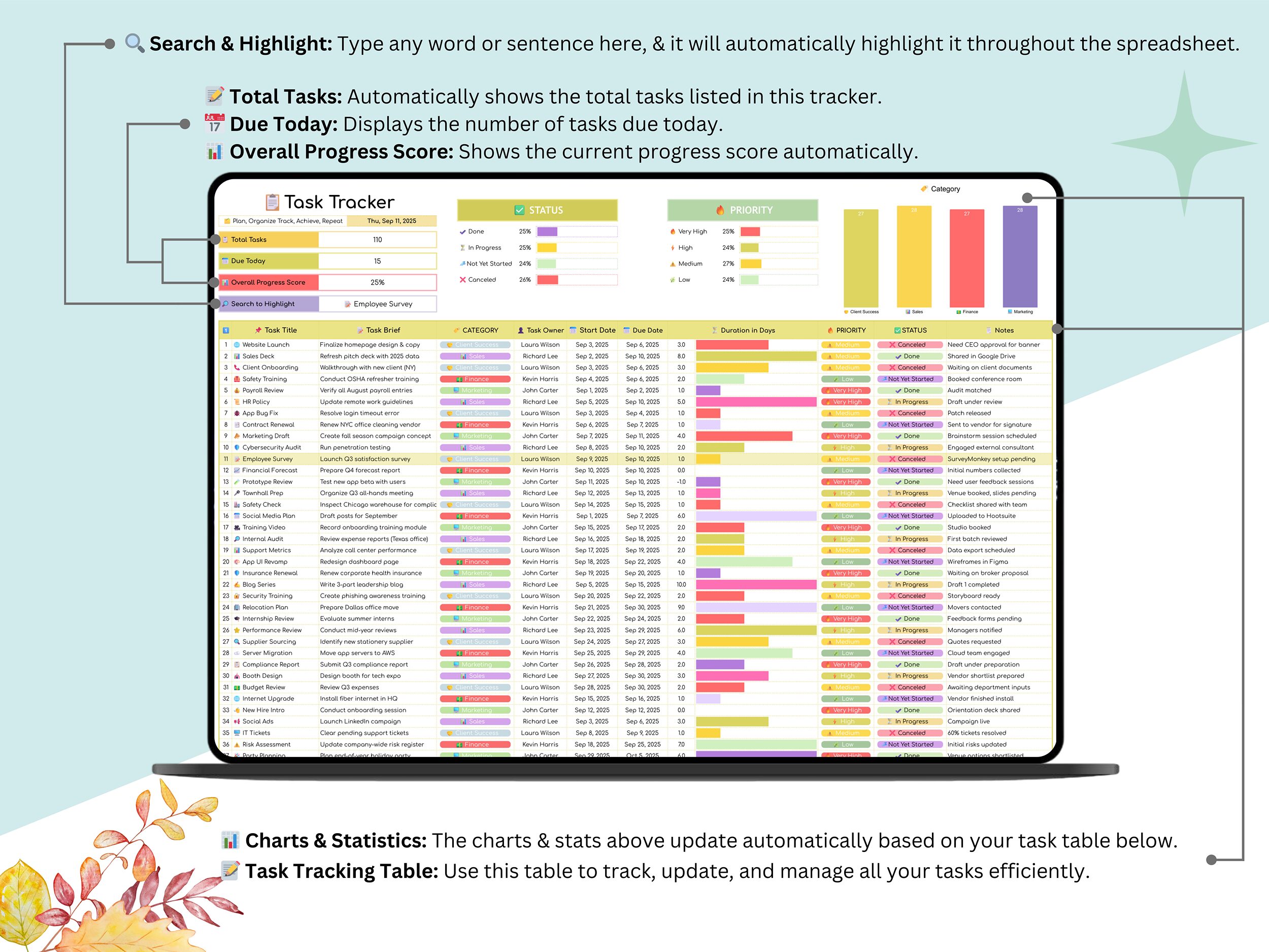 📑 Task Tracker Tab – Add, update, and manage your tasks in one central place