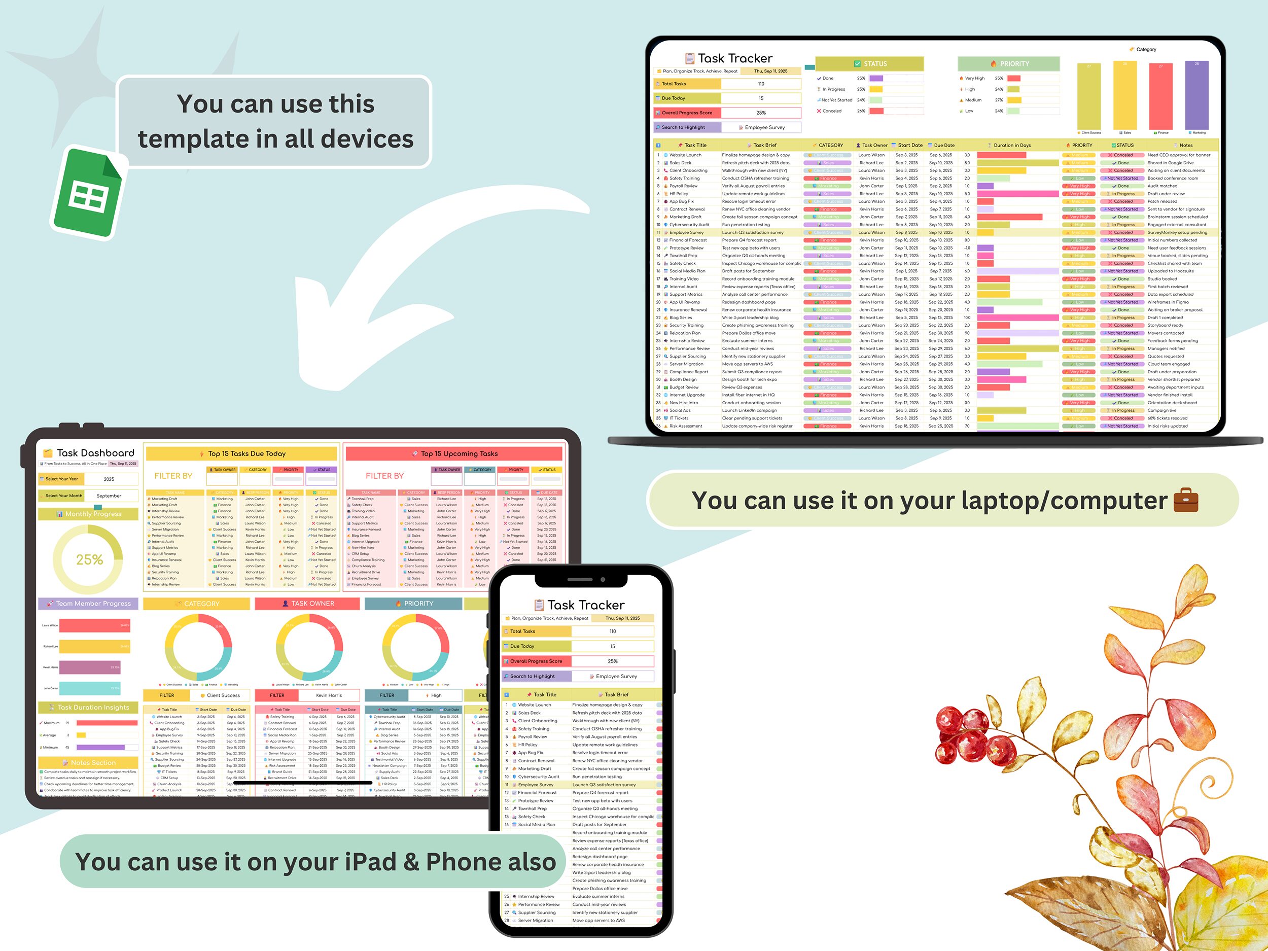 ✅ Task Manager Spreadsheet (Google Sheets/Excel) – Professionally designed template