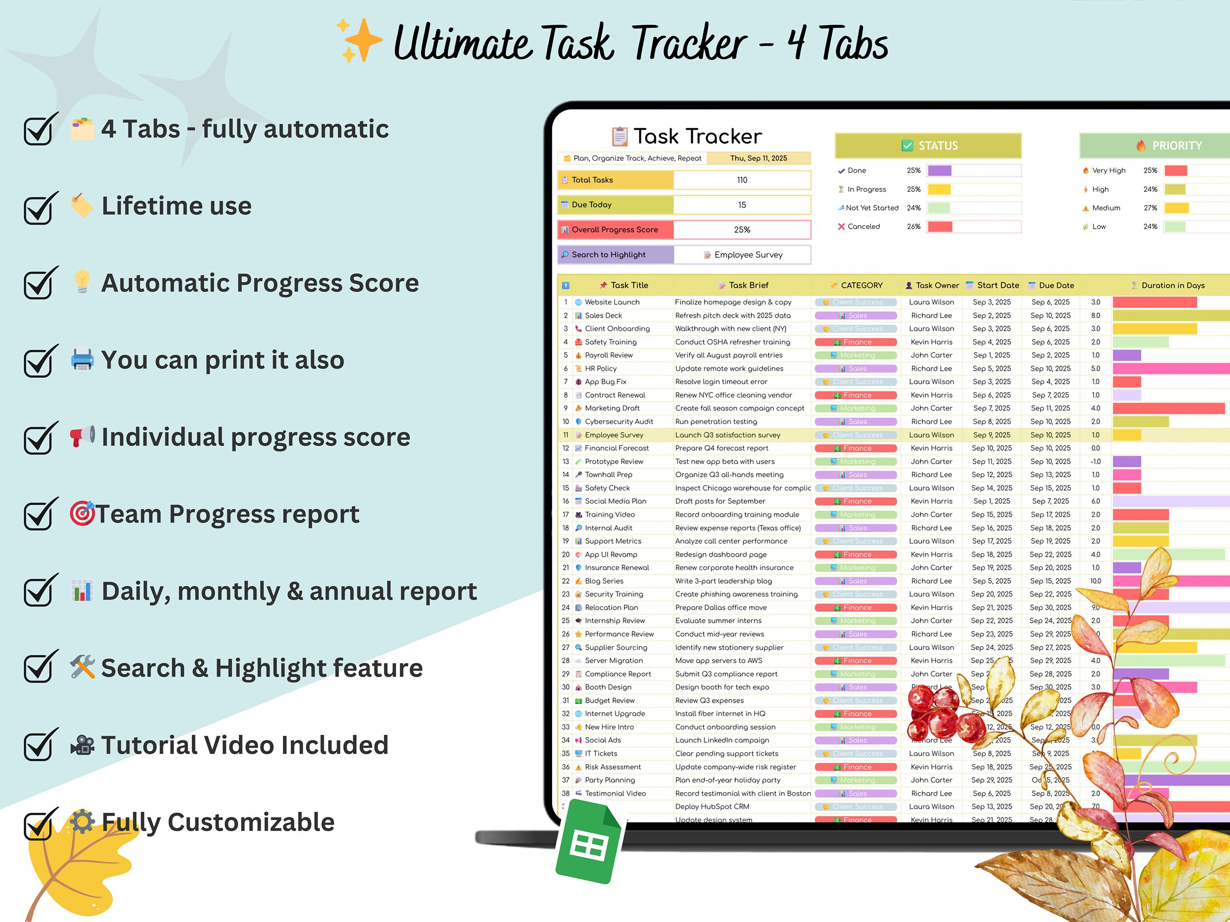Thank you for choosing this Task Manager Spreadsheet 🚀