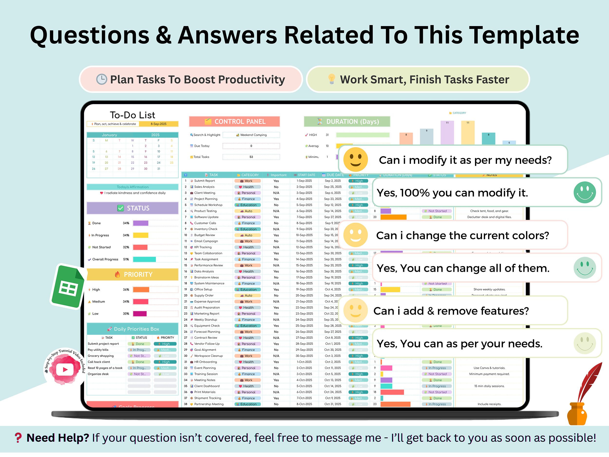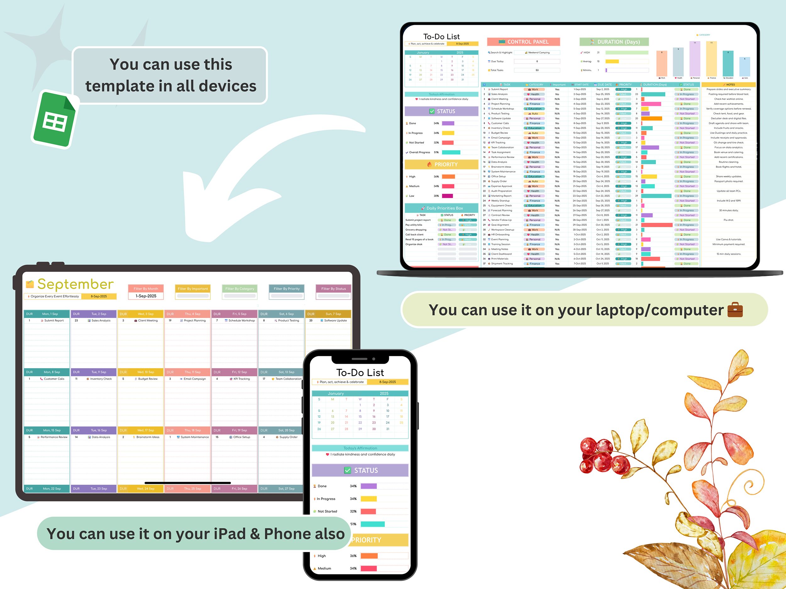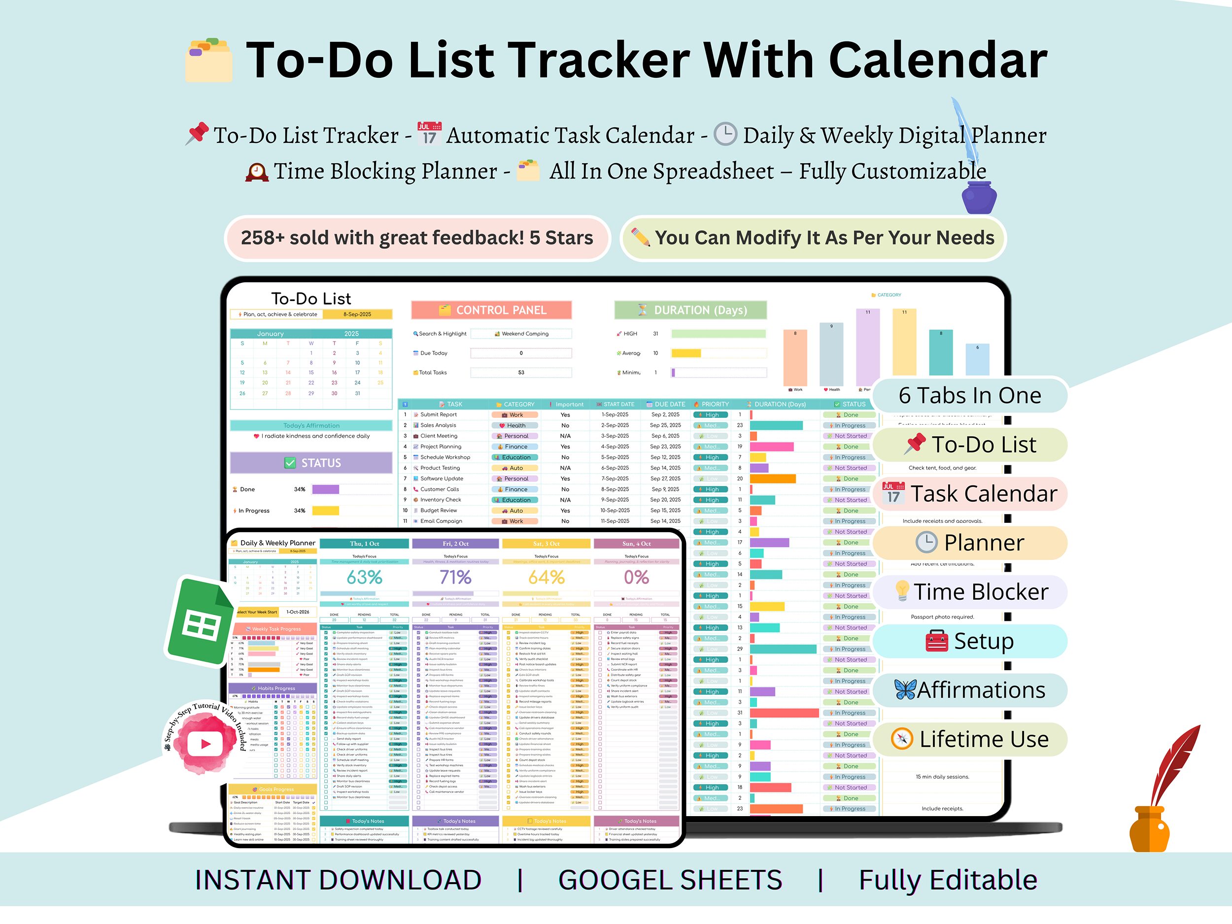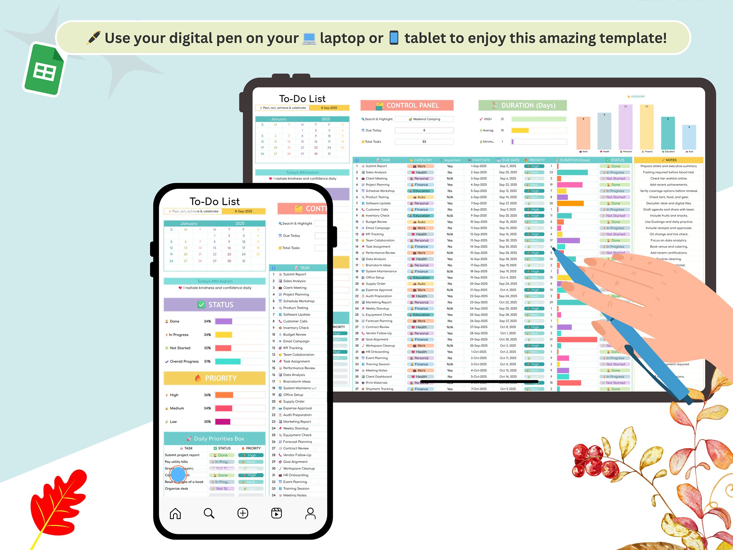 Boost Your Productivity with the Ultimate All-in-One To-Do List & Digital Planner Spreadsheet!