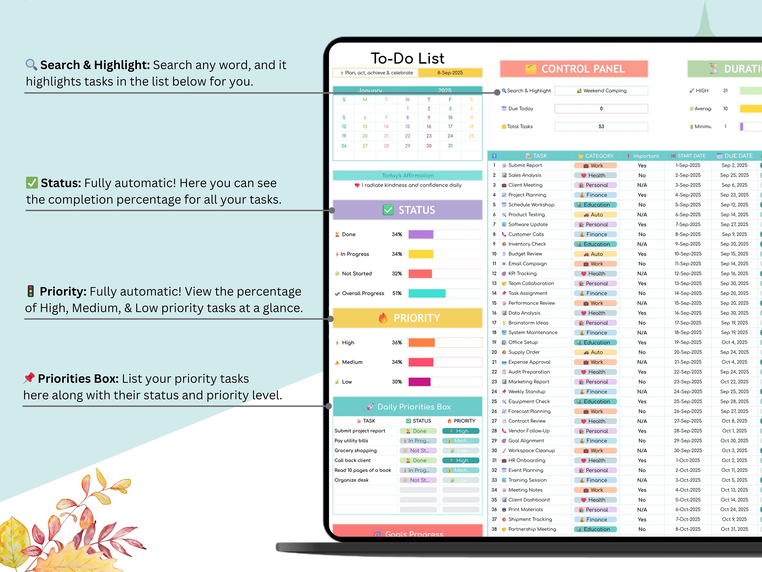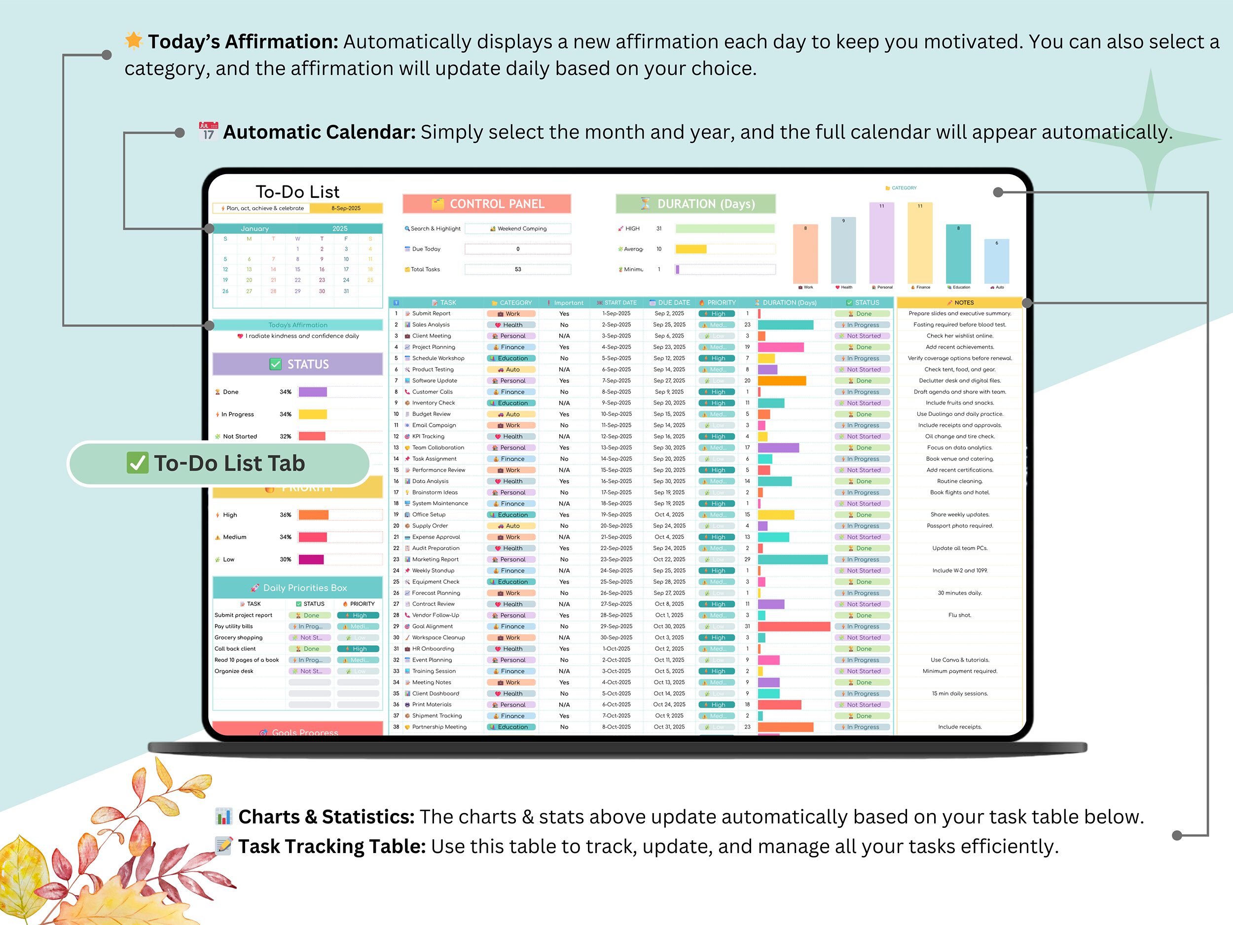 π What Youβll Receive: Automated To-Do List & Calendar Spreadsheet (Google Sheets).