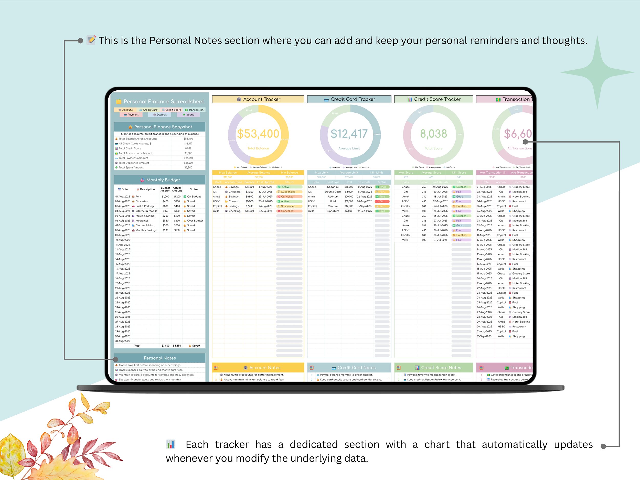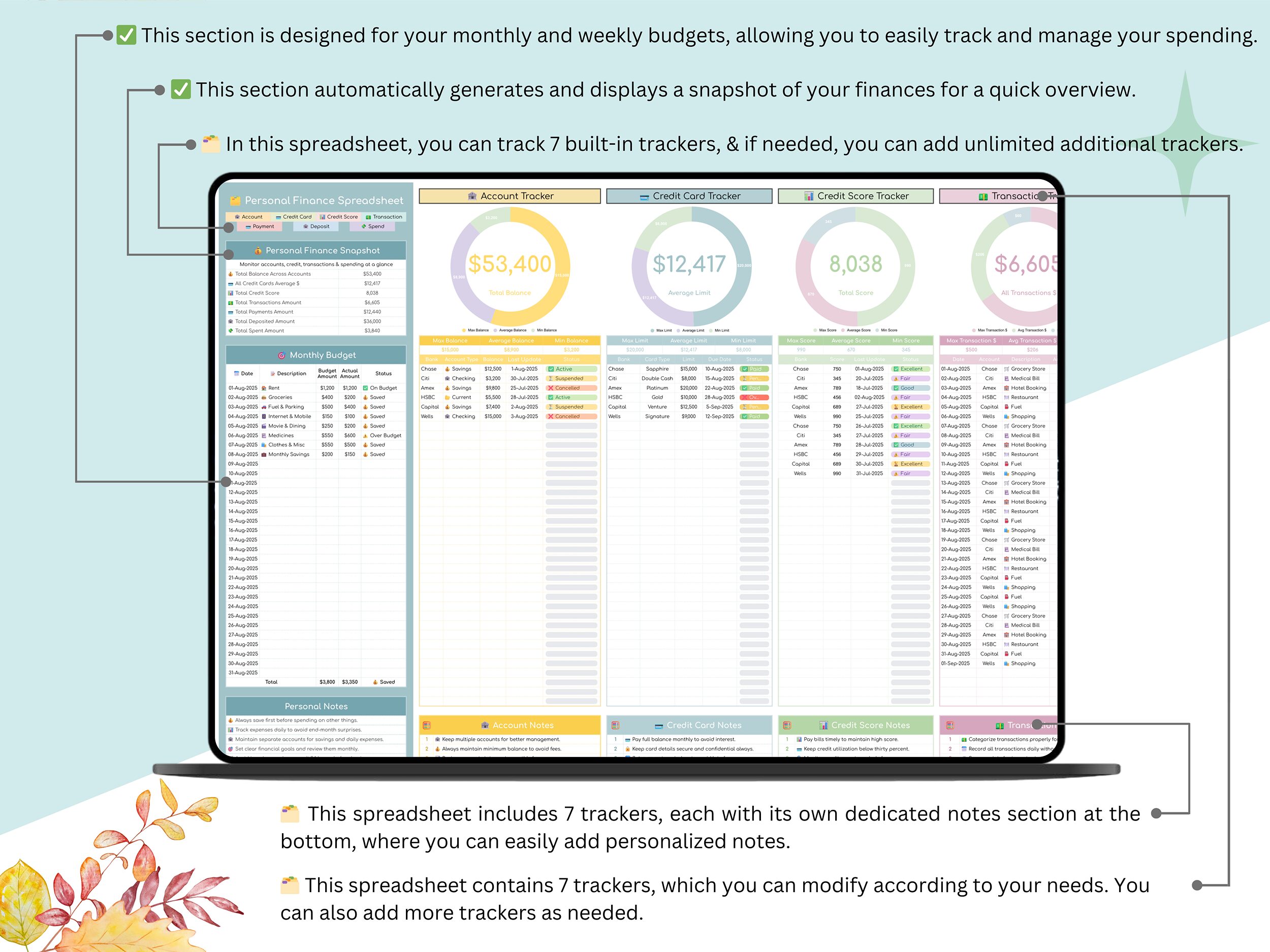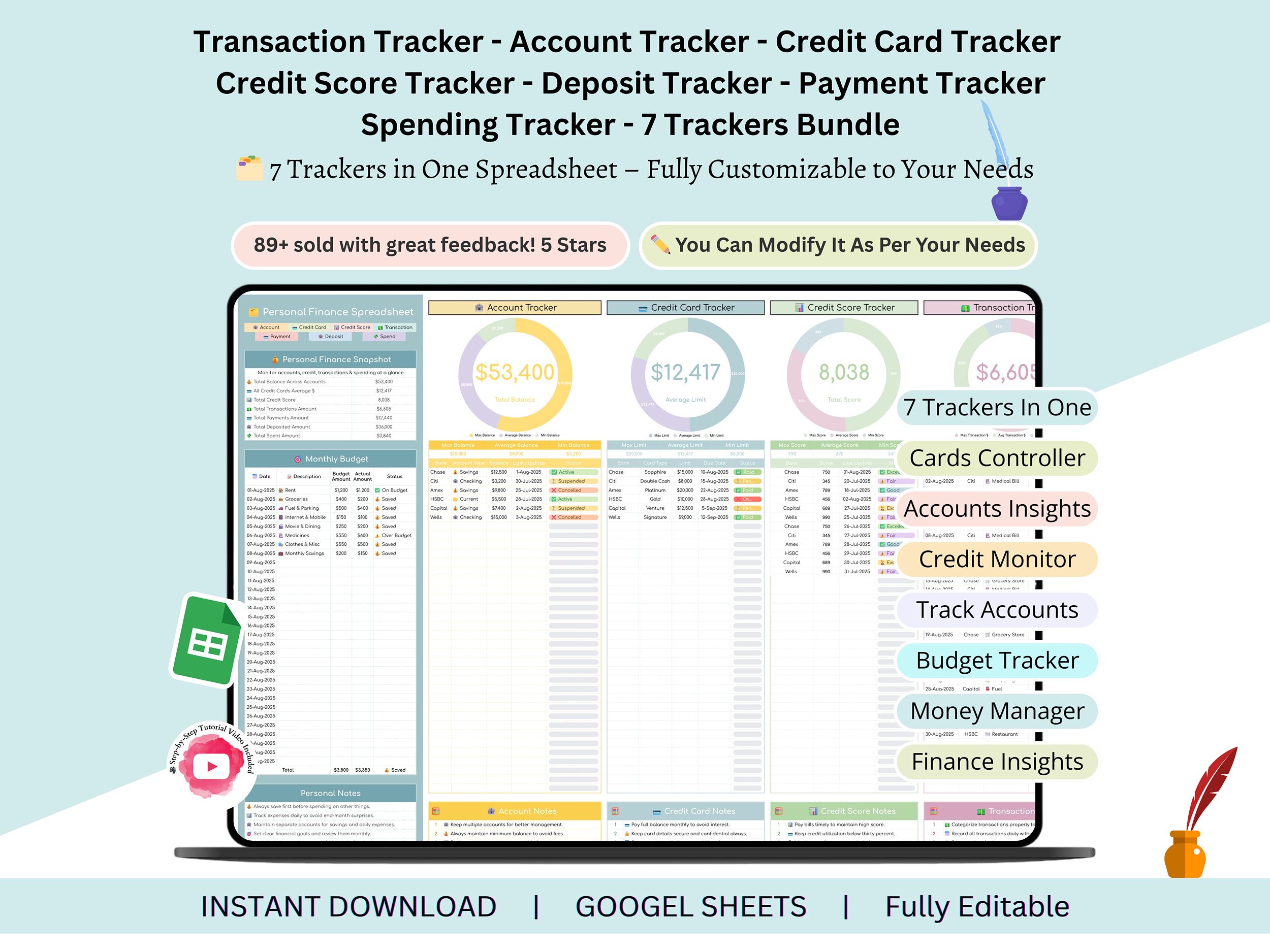 Transaction tracker – account tracker – credit card tracker -credit score tracker – deposit tracker – payment tracker – spending tracker